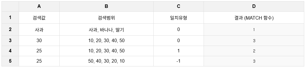 이렇게 간단한 예제로 시작해서 점점 더 다양한 상황에 적용해보시면, 어느새 MATCH 함수가 손에 착 감기실 거예요!