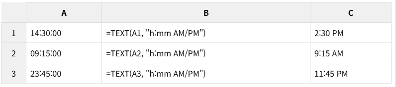 예를 들어 C1 셀에 14:30:00이라고 되어 있다면, 이 함수를 쓰면 2:30 PM으로 깔끔하게 바뀝니다. 특히 일반 보고서나 회의 자료를 작성할 때는 이렇게 친숙한 12시간 형식으로 바꾸는 게 훨씬 보기 좋더라고요.